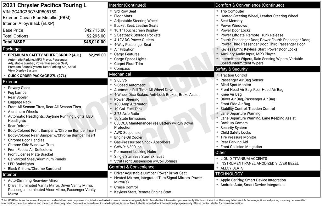 Whether you're transporting the family, embarking on a road trip, or simply seeking a vehicle that combines style, comfort, and technology, the 2021 Chrysler Pacifica Touring L is the perfect choice. Experience the difference for yourself and schedule a test drive today. We're confident that once you step inside, you'll be captivated by the exceptional quality and attention to detail that sets this Pacifica apart.