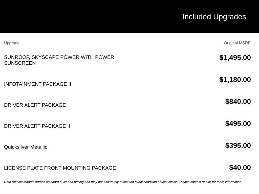 - Driver Assist Packages with advanced safety features like Lane Change Alert, Rear Cross-Traffic Alert, and Forward Collision Alert