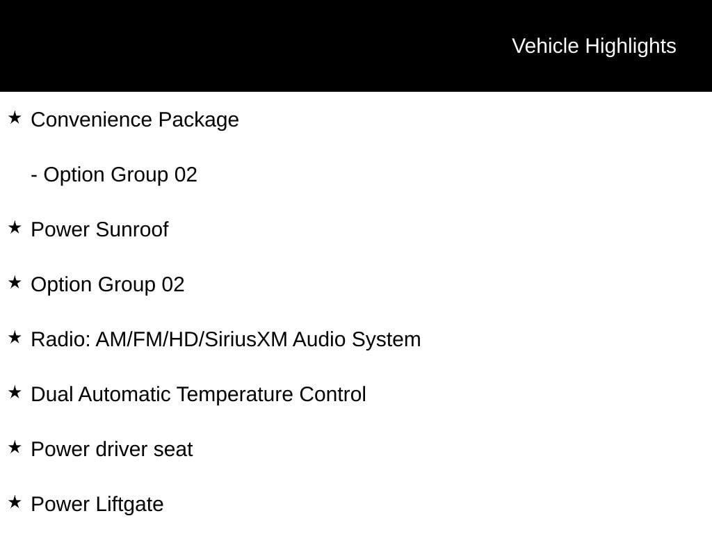 - Radio: AM/FM/HD/SiriusXM Audio System