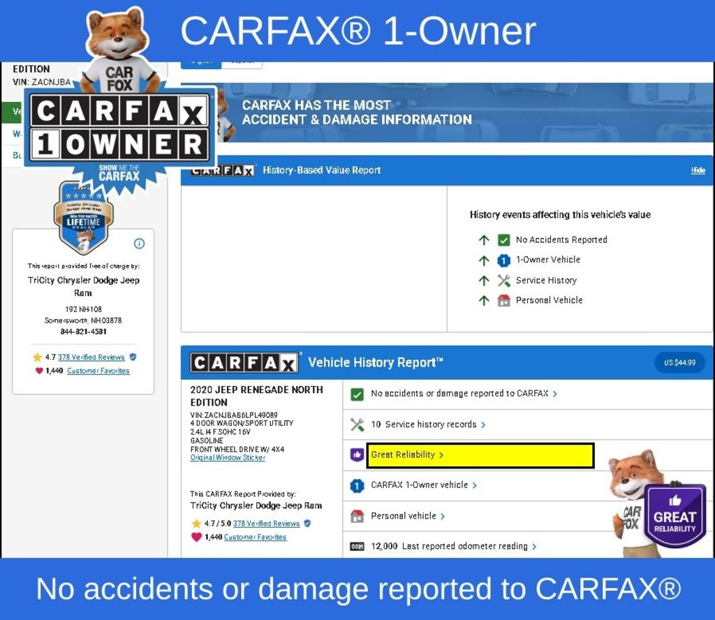 Designed to handle any terrain, the Renegade Sport comes equipped with features like front tow hooks, a front suspension skid plate, and all-weather floor mats to keep you prepared for whatever lies ahead. The North Special Group further enhances the vehicle's capability and style, adding unique exterior and interior accents that set it apart from the crowd.