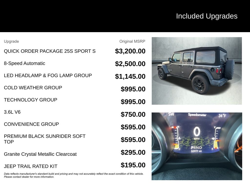 Whether you're embarking on a rugged off-road adventure or navigating the daily commute, the 2021 Jeep Wrangler Unlimited Sport S is the ultimate choice. Experience the thrill of the open road and the freedom of the great outdoors with this exceptional SUV. Visit our showroom today and let us help you discover the perfect Wrangler to match your adventurous lifestyle.