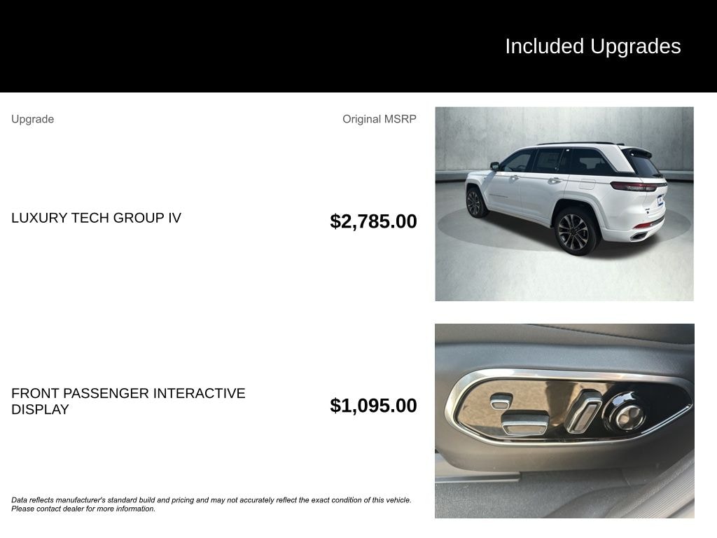 Boasting a 2.0L I4 DOHC engine and 4WD, this Jeep Grand Cherokee Overland 4xe delivers exceptional performance and capability, whether you're navigating the city streets or exploring the great outdoors. The advanced technology and luxurious amenities elevate your driving experience to new heights.