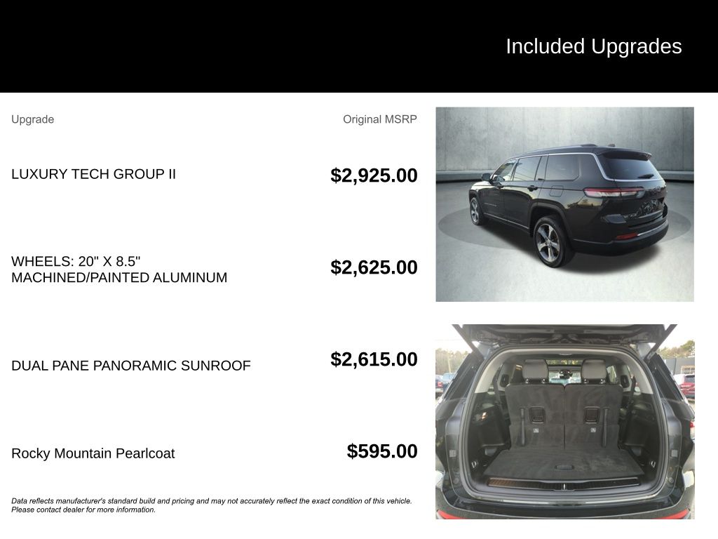 Powered by a robust 3.6L V6 engine mated to an 8-speed automatic transmission, the Grand Cherokee L Limited delivers a thrilling and efficient performance, with an EPA-estimated 18 city/25 highway MPG. The advanced 4WD system ensures you can conquer any terrain with confidence, while the Luxury Tech Group II elevates your driving experience with a wealth of cutting-edge features.