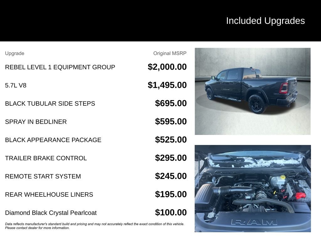 This Ram 1500 Rebel is more than just a capable off-road machine. It's a true expression of your adventurous spirit, with a refined interior that blends style and practicality. The Uconnect 4 infotainment system with an 8.4-inch display keeps you connected and entertained, while the heated steering wheel and front seats ensure your comfort, no matter the weather.
