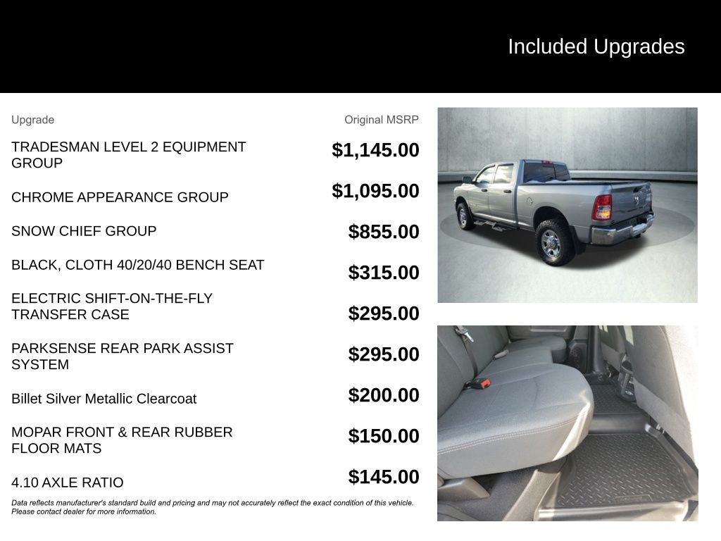⢠Tradesman Level 2 Equipment Group with SiriusXM Satellite Radio, Rear Window Defroster, and Rear Power Sliding Window $1445.00 Customer Value!