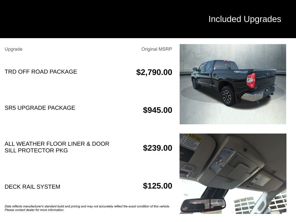 ⢠All-Weather Floor Liner and Door Sill Protector Package: Keeps your Tundra's interior pristine and protected.
