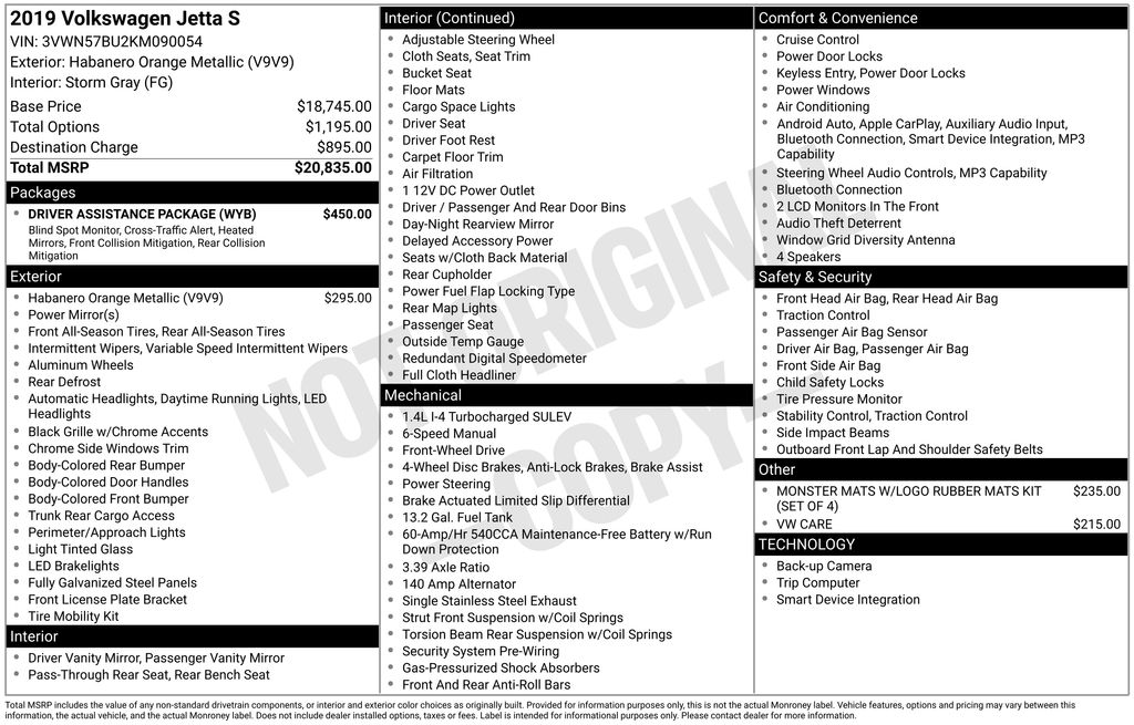 Boasting an impressive array of features, this Jetta is equipped with the Driver Assistance Package, which includes Blind Spot Monitor with Rear Traffic Alert, Forward Collision Warning, Autonomous Emergency Braking, and heated side mirrors. To further enhance your driving comfort and convenience, the vehicle also comes with the following: