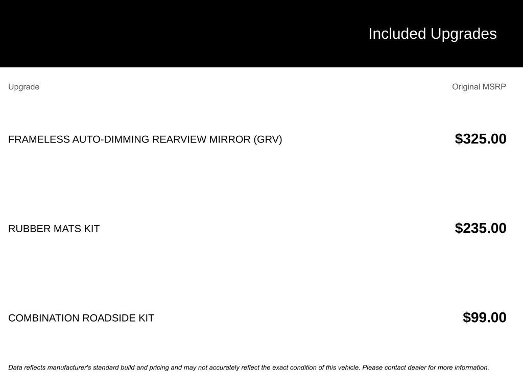 ⢠Frameless Auto-Dimming Rearview Mirror (GRV) with compass and HomeLink garage door opener