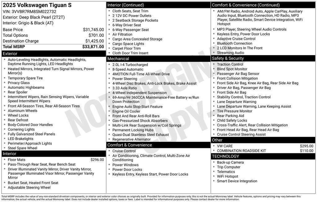 Whether you're looking for a capable family SUV, a versatile adventure companion, or a stylish daily driver, the 2025 Volkswagen Tiguan 2.0T S is the perfect choice. Experience the difference for yourself and schedule a test drive today. We're confident you'll be impressed by all this Tiguan has to offer.