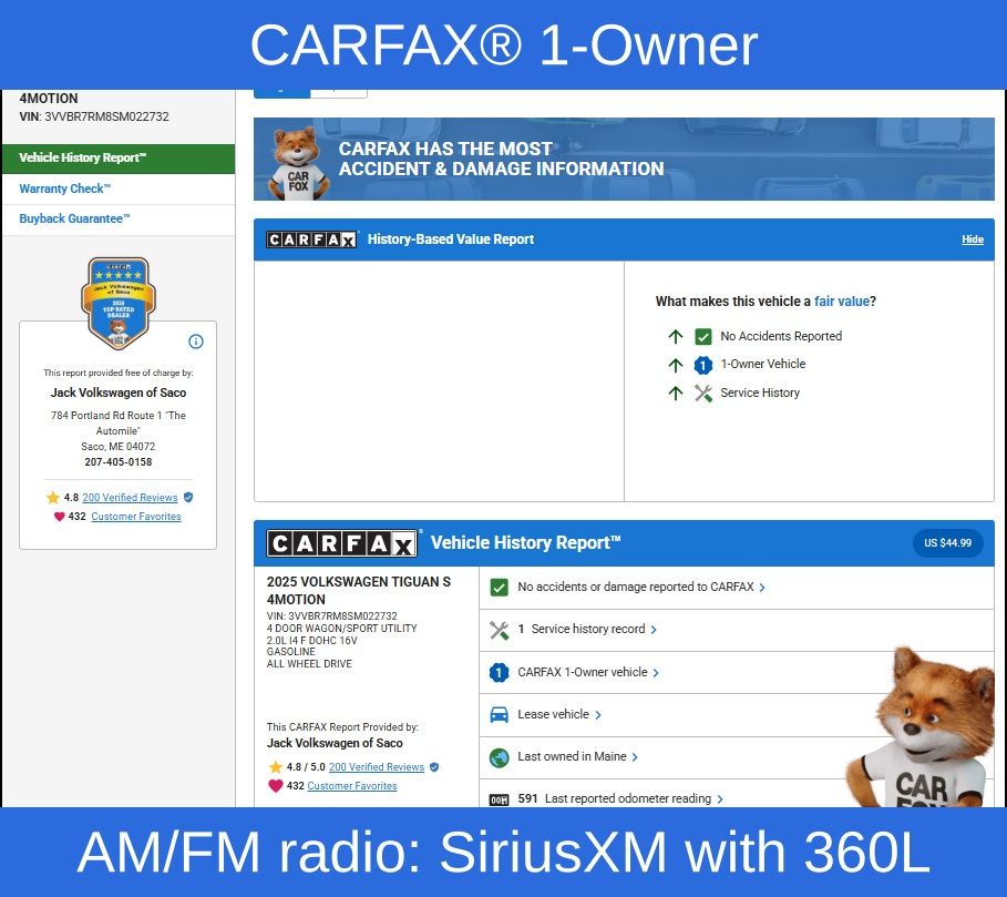 As a Volkswagen, this Tiguan is built to last, with a reputation for quality and reliability that is second to none. The included VW Care prepaid maintenance plan further demonstrates our commitment to your long-term satisfaction, providing worry-free ownership and peace of mind.